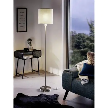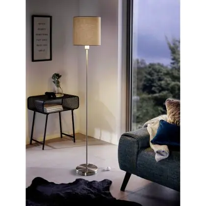 Eglo Floor Lamp Pasteri Steel Satin Nickel Taupe | IP20 - Suitable for 1x E27