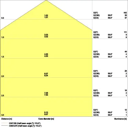 ![]() The colour code is a combination of colour rendering (CRI) and light colour (Kelvin). The first number indicates the colour rendering (1 = very poor colour rendering, 9 = maximum colour fastness). The second and third number contains the light colour. Example: the colour code 830 consists of good colour rendering (8) and warm white light (3000K). |