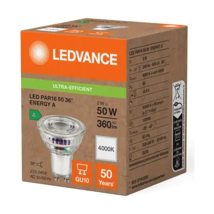 Ledvance LED PAR16 GU10 Reflector 2W 360lm 36D - 840 Cool White | Replaces 50W