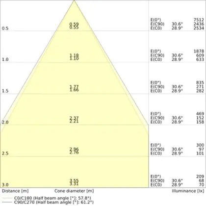 ![]() The colour code is a combination of colour rendering (CRI) and light colour (Kelvin). The first number indicates the colour rendering (1 = very poor colour rendering, 9 = maximum colour fastness). The second and third number contains the light colour. Example: the colour code 830 consists of good colour rendering (8) and warm white light (3000K). |
