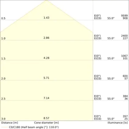 ![]() The colour code is a combination of colour rendering (CRI) and light colour (Kelvin). The first number indicates the colour rendering (1 = very poor colour rendering, 9 = maximum colour fastness). The second and third number contains the light colour. Example: the colour code 830 consists of good colour rendering (8) and warm white light (3000K). |