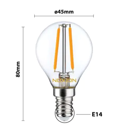 Noxion Lucent Lustre LED E14 Ball Filament Clear 2.5W 250lm – Dimmable - Replaces 25W