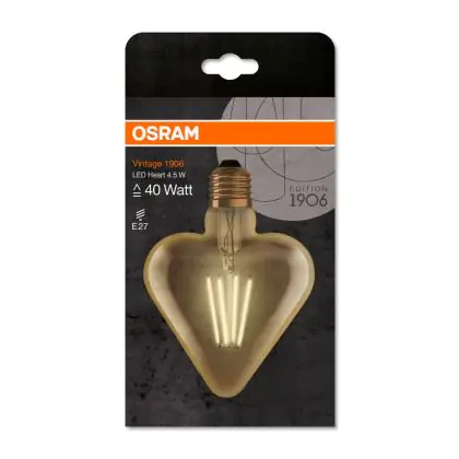 Osram Vintage 1906 LED E27 Heart Filament Gold 4.5W 470lm - 825 Extra Warm White | Replaces 40W
